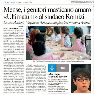 25 Febbraio 2016 - I comitati dei genitori hanno mantenuto la promessa di mettere per iscritto la minaccia di diffida al Comune per il ritorno ai piatti di plastica, e non solo, nelle scuole dove c'era stato il cambiamento virtuoso, ma sempre sollecitato dai genitori e da IdeAzioni Civiche, che aveva sostituito la plastica con la ceramica. E' triste non potersi fidare della parola di un amministratore, ma è una realtà. Allora non rimane altro da fare che scrivere...