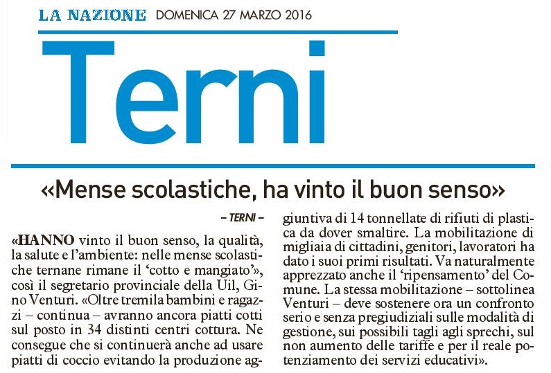 27 Marzo 2016 - Perugia - Il buon senso non ispira l'amministrazione perugina, a giudicare dalle notizie riportate sulla stampa. Si tratta della situazione mense scolastiche con la questione del ripristino dei piatti di plastica, dopo che, con tanta fatica, erano stati sostituiti con piatti lavabili grazie allo stesso assessore che ora ha rispristinato la plastica. E poi la questione della qualità del cibo e delle porzioni, tutto sembra ispirato da criteri diversi da quelli che dovrebbero guidare queste scelte. Sul ritorno alla plastica, per esempio, sarebbe interessante conoscere la ragione vera che ha ispirato il ritorno al passato.